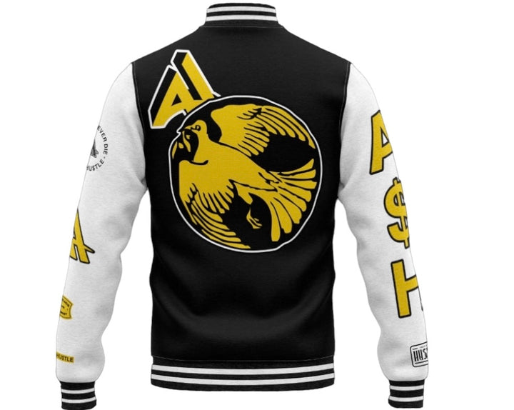 Exclusively Designed Varsity Jackets by Alpha Hu$tle Apparel, tailor-made for the relentless hustlers who understand that quality isn't cheap, but it's an investment in their journey aka Motion.