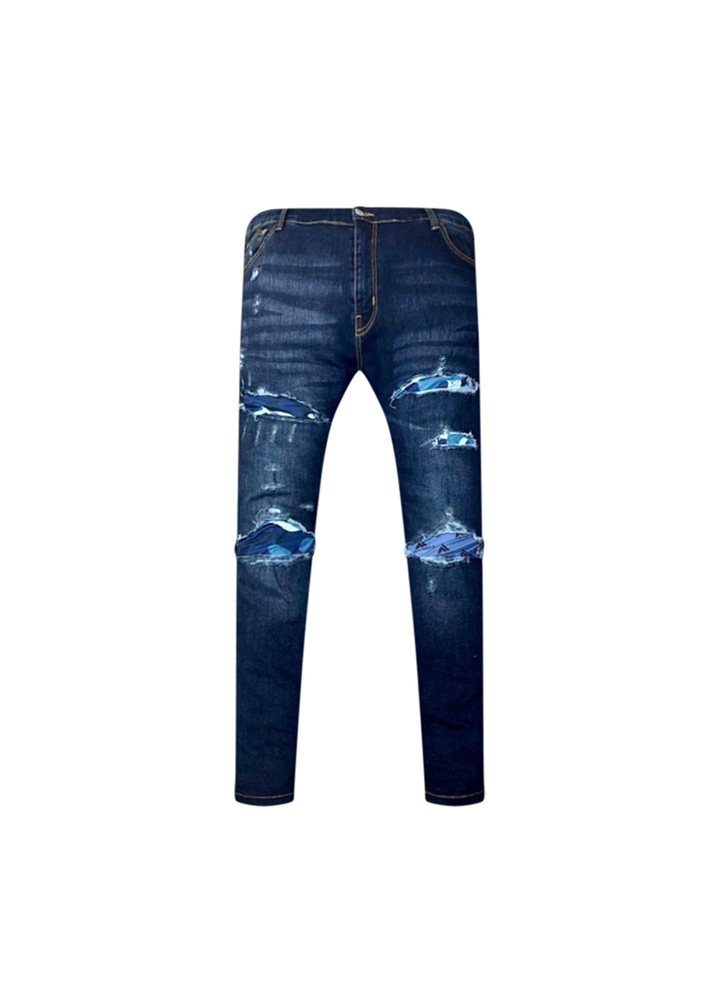 Our Camo Blue Patch Denim is your hustle anthem—stretch denim, comfortable fit, pure streetwear energy.