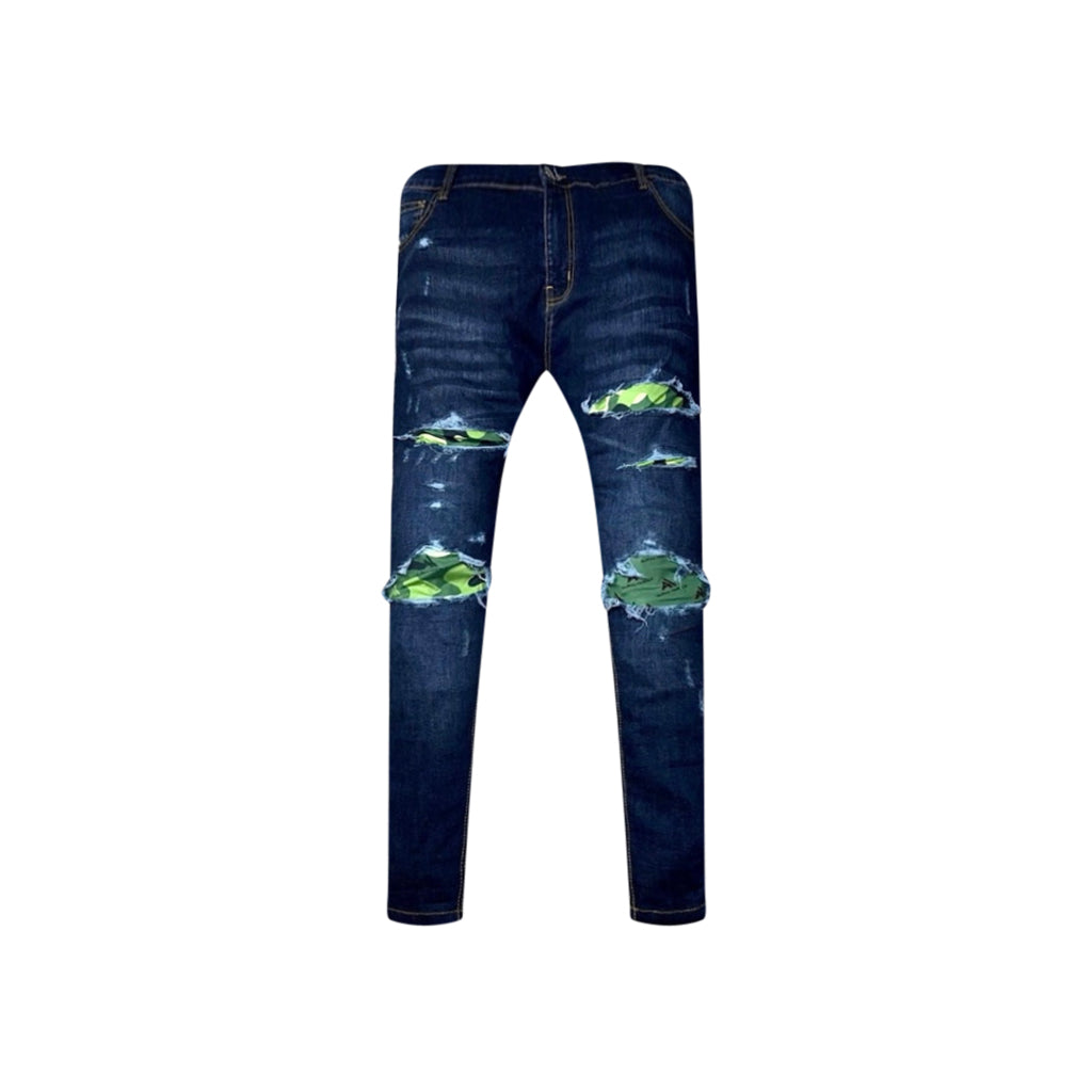 Our Camo Green Patch Denim is your hustle anthem—stretch denim, comfortable fit, pure streetwear energy.