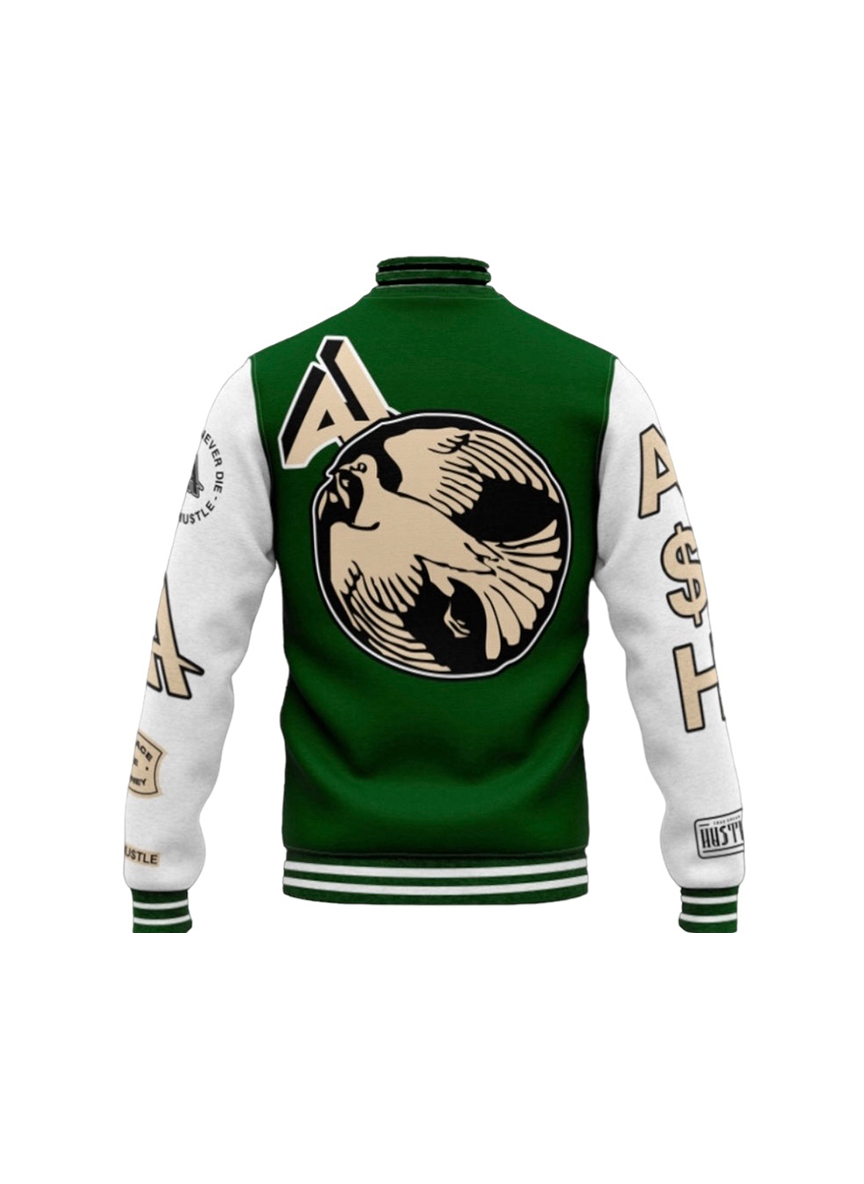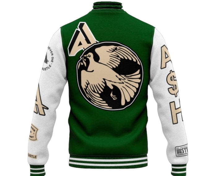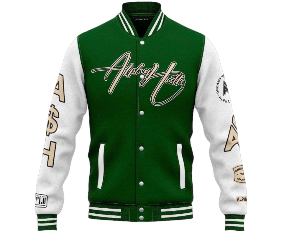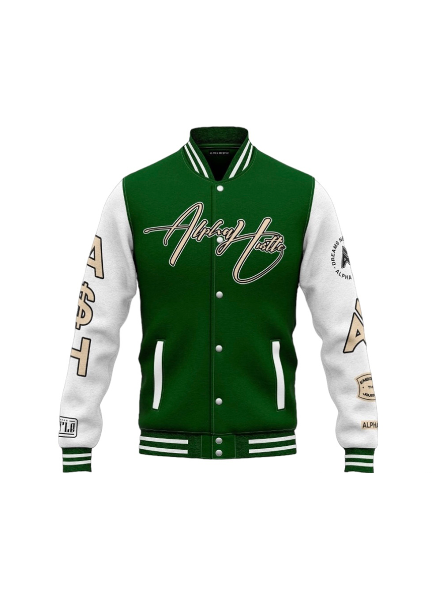 Exclusively Designed Varsity Jackets by Alpha Hu$tle Apparel, tailor-made for the relentless hustlers who understand that quality isn't cheap, but it's an investment in their journey aka Motion.
