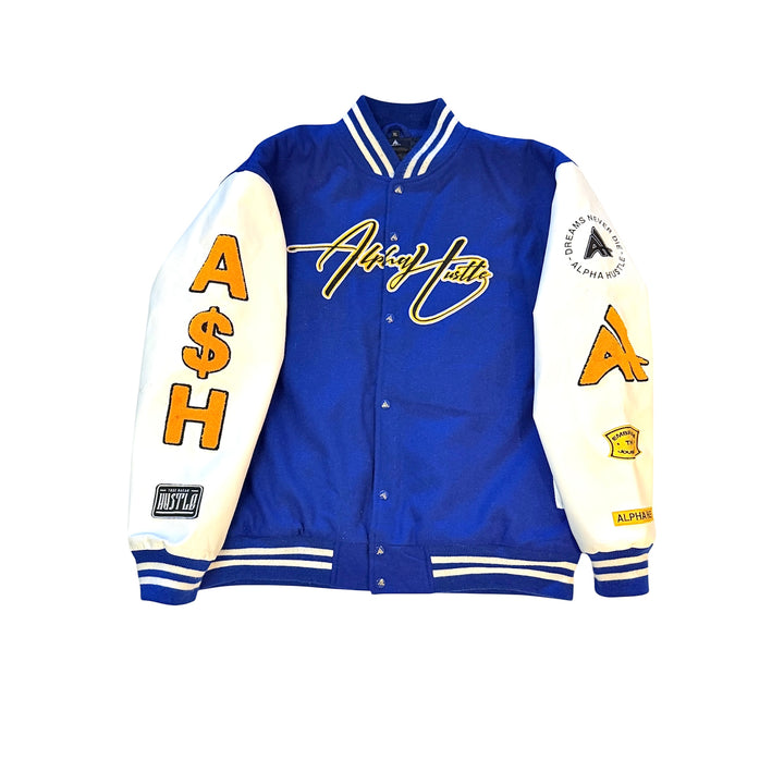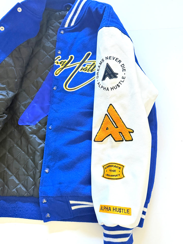 Exclusively Designed Varsity Jackets by Alpha Hu$tle Apparel, tailor-made for the relentless hustlers who understand that quality isn't cheap, but it's an investment in their journey aka Motion.