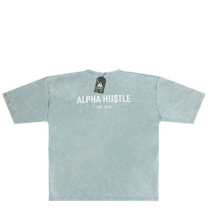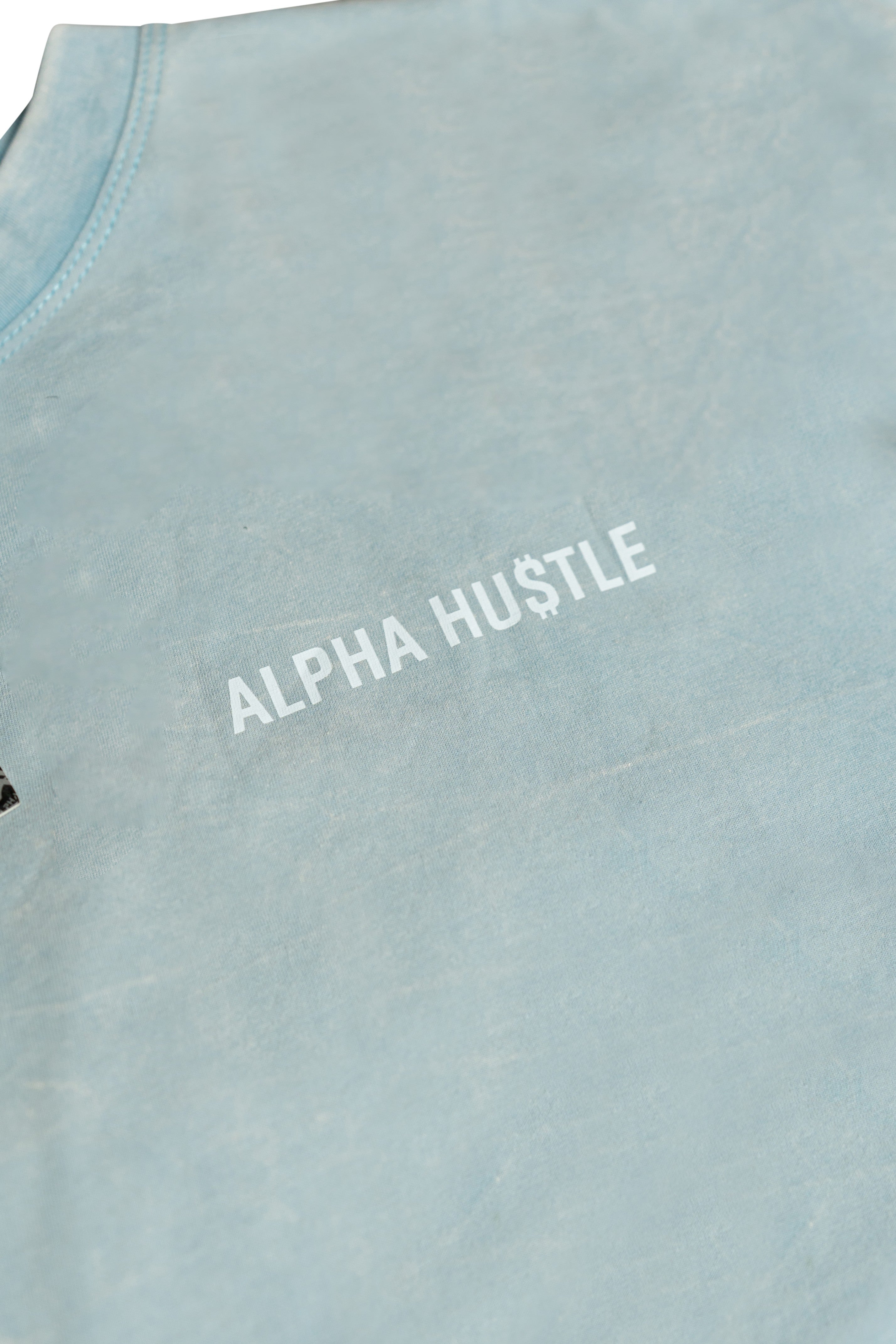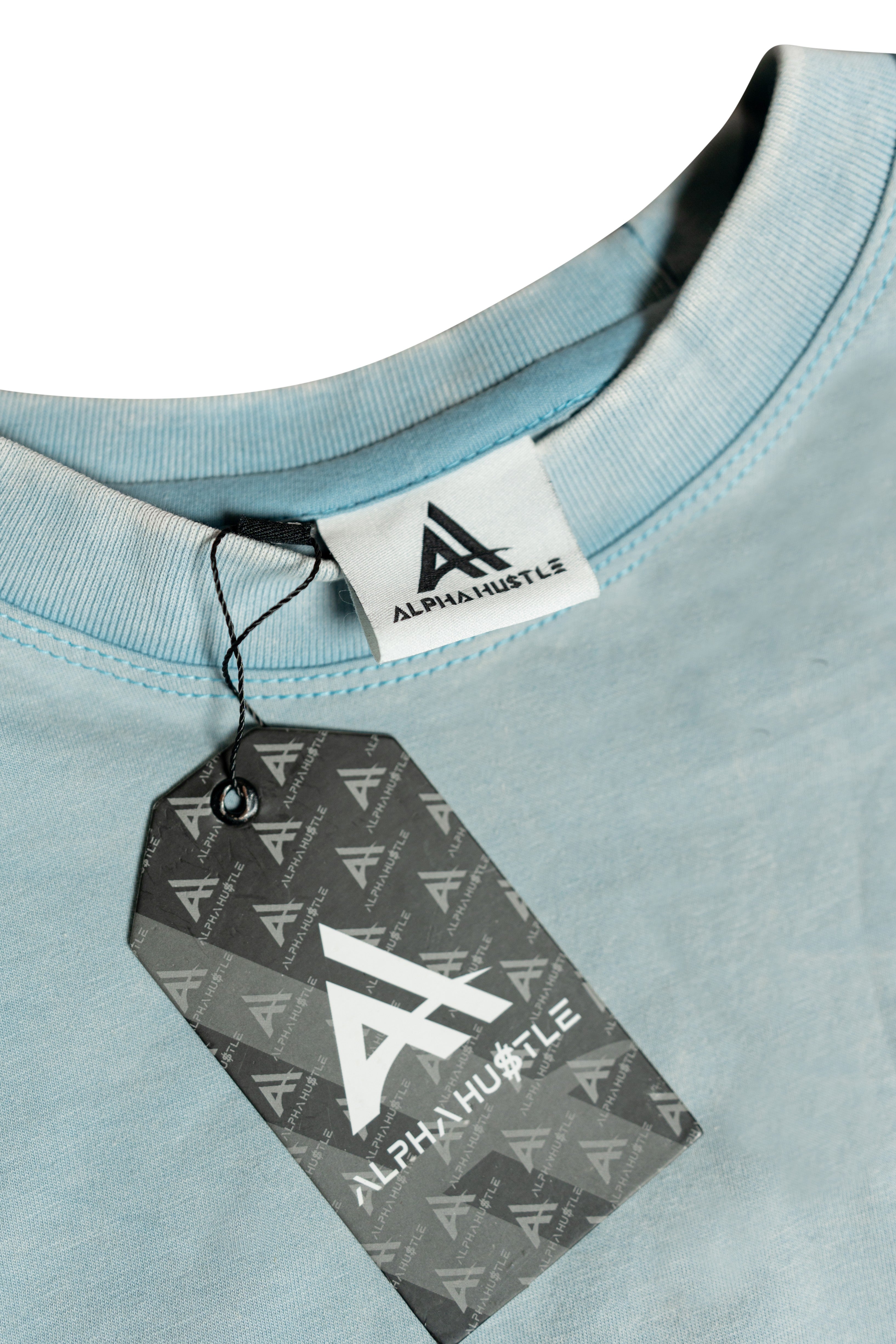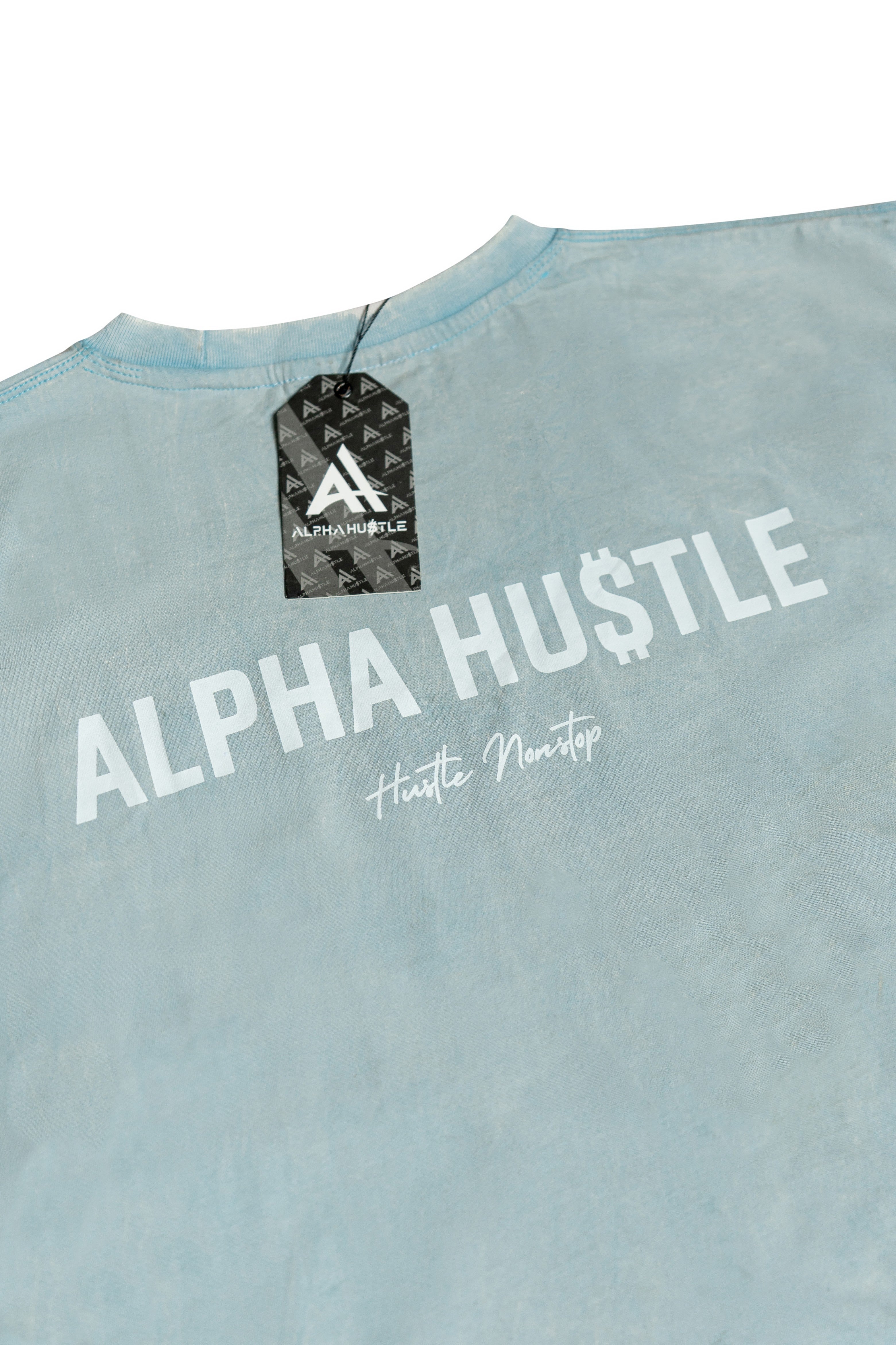 HUSTLE NON STOP TEE( Turquoise Acid Wash)