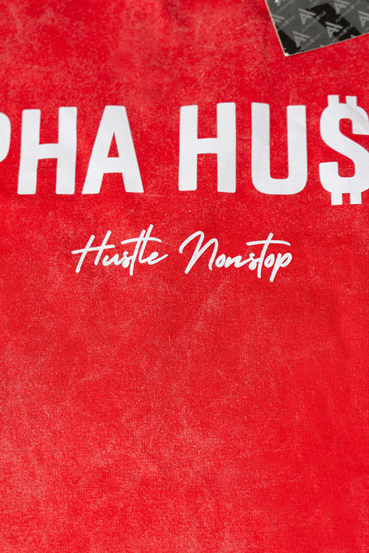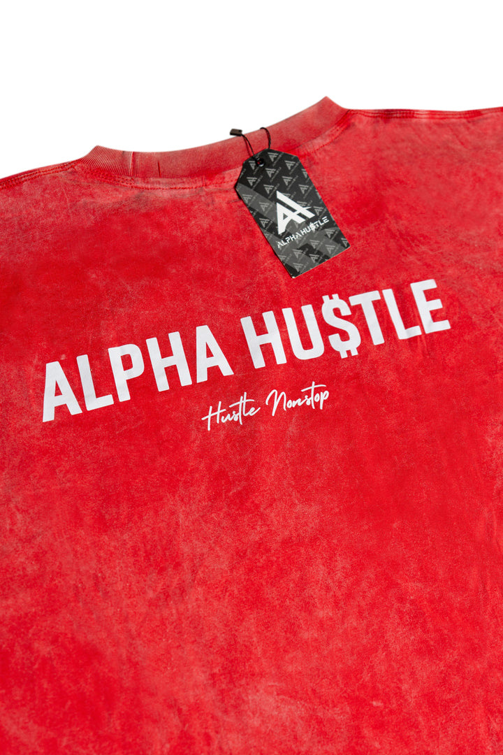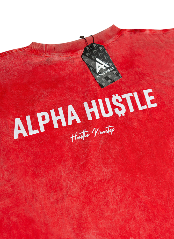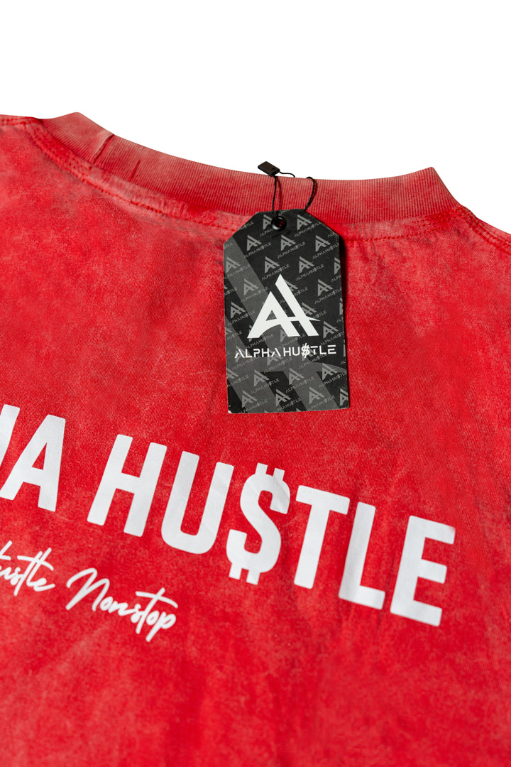 "HUSTLE NON-STOP" print on the shoulder, crafted with high-quality materials. Featuring a unique acid wash finish, this tee ensures a perfect fit with sweat-wicking and breathable fabrics, designed for both performance and style. Ideal for those who embrace the grind and push their limits every workout.