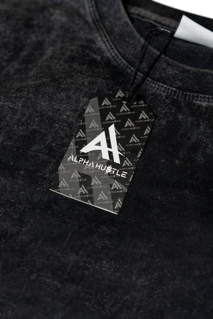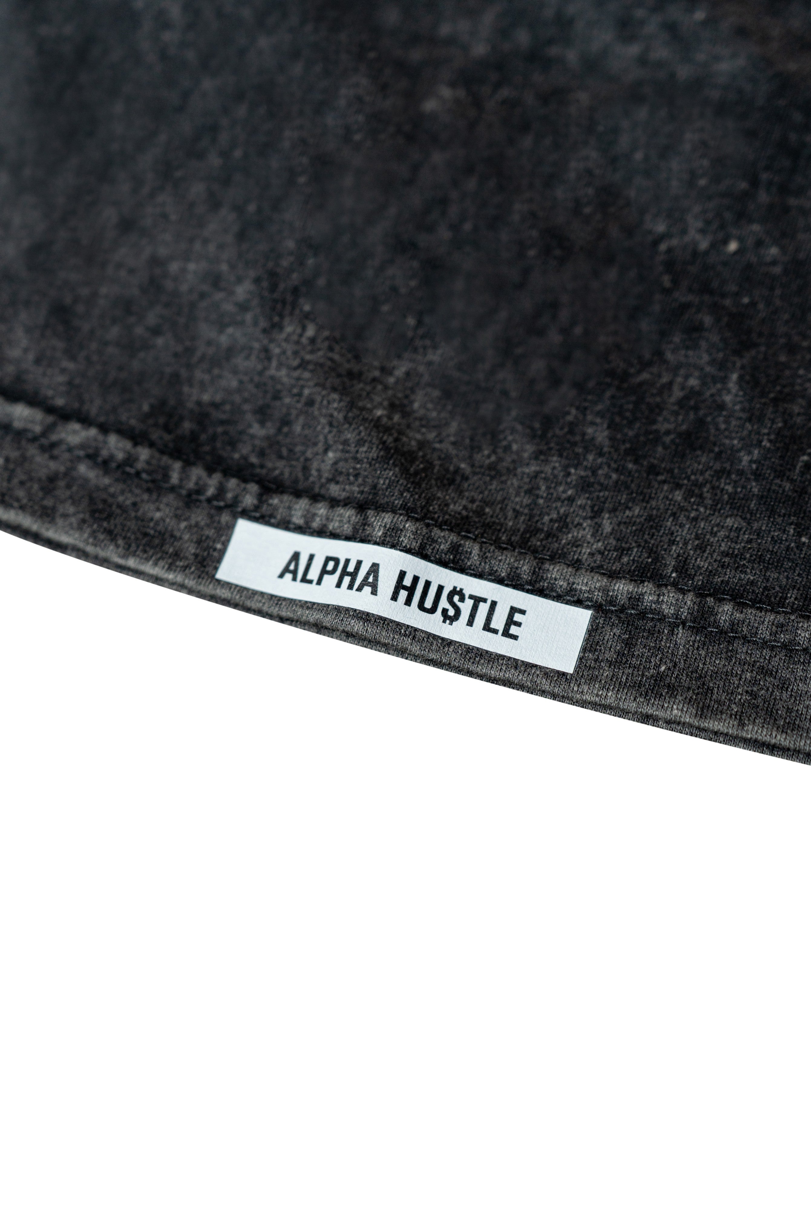 "HUSTLE NON-STOP" print on the shoulder, crafted with high-quality materials. Featuring a unique acid wash finish, this tee ensures a perfect fit with sweat-wicking and breathable fabrics, designed for both performance and style. Ideal for those who embrace the grind and push their limits every workout.