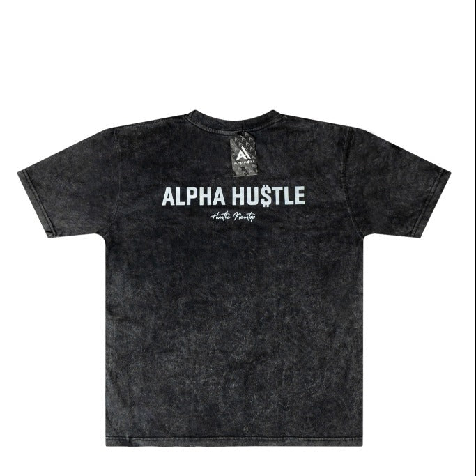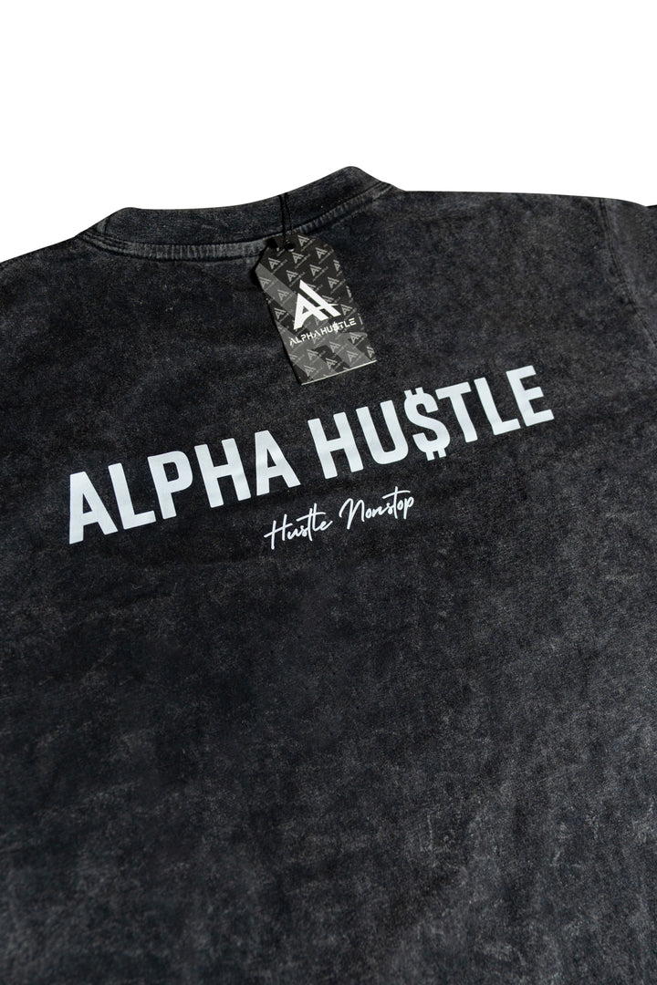HUSTLE NON STOP TEE( Black Stone Washed)
